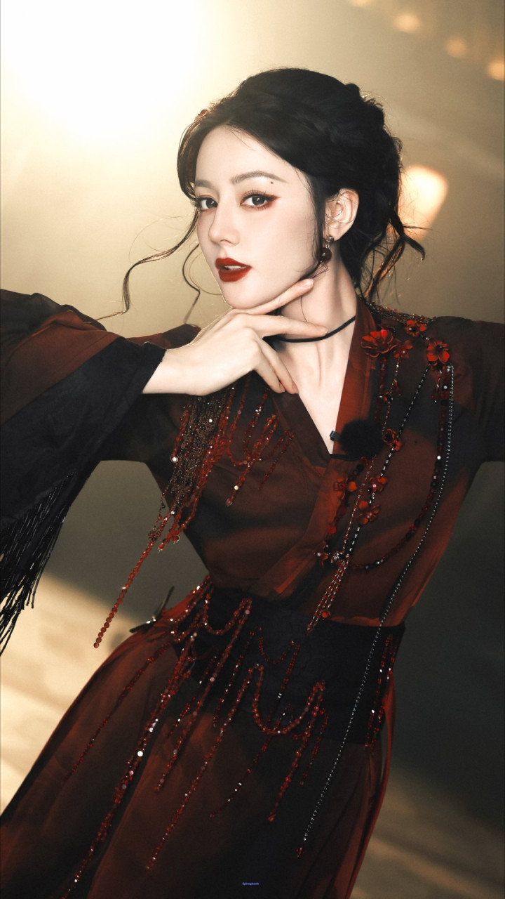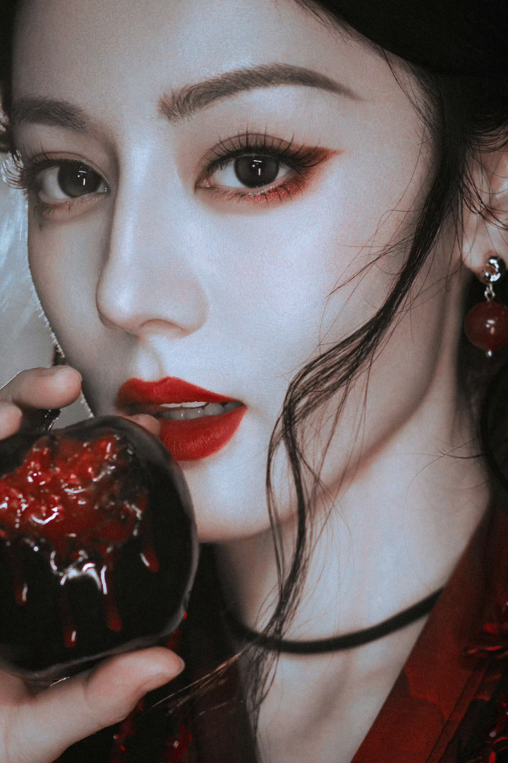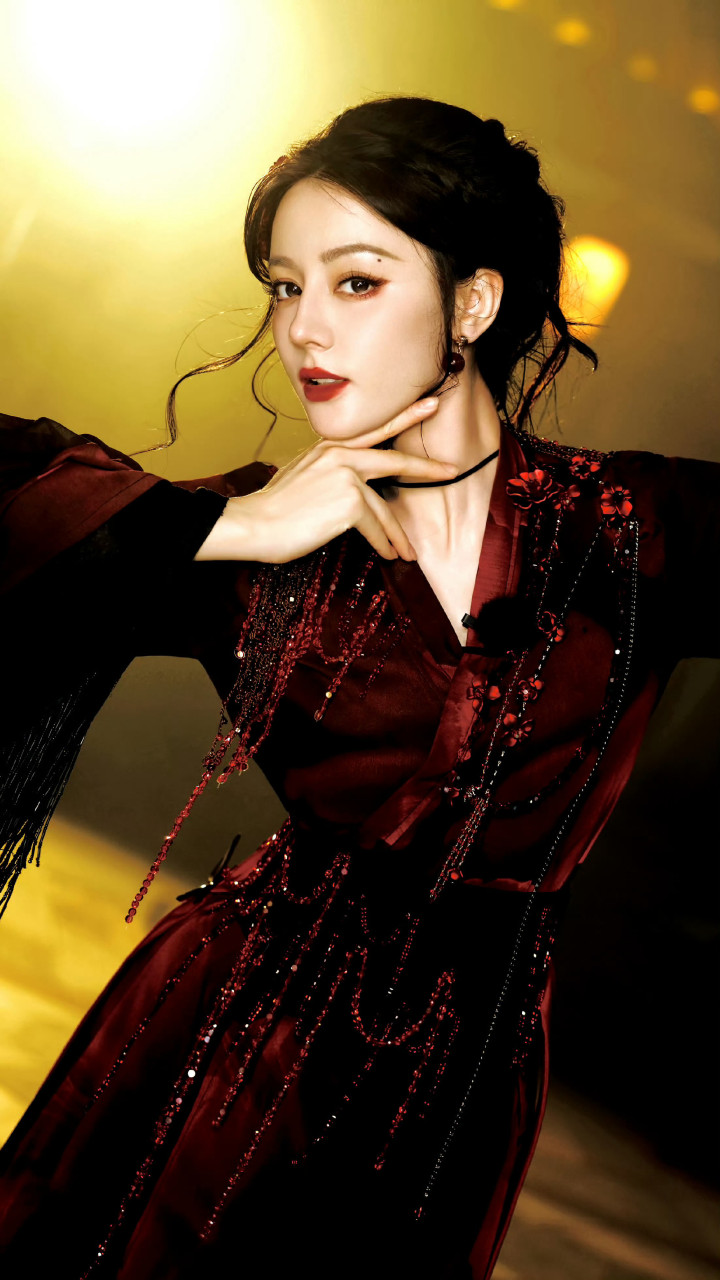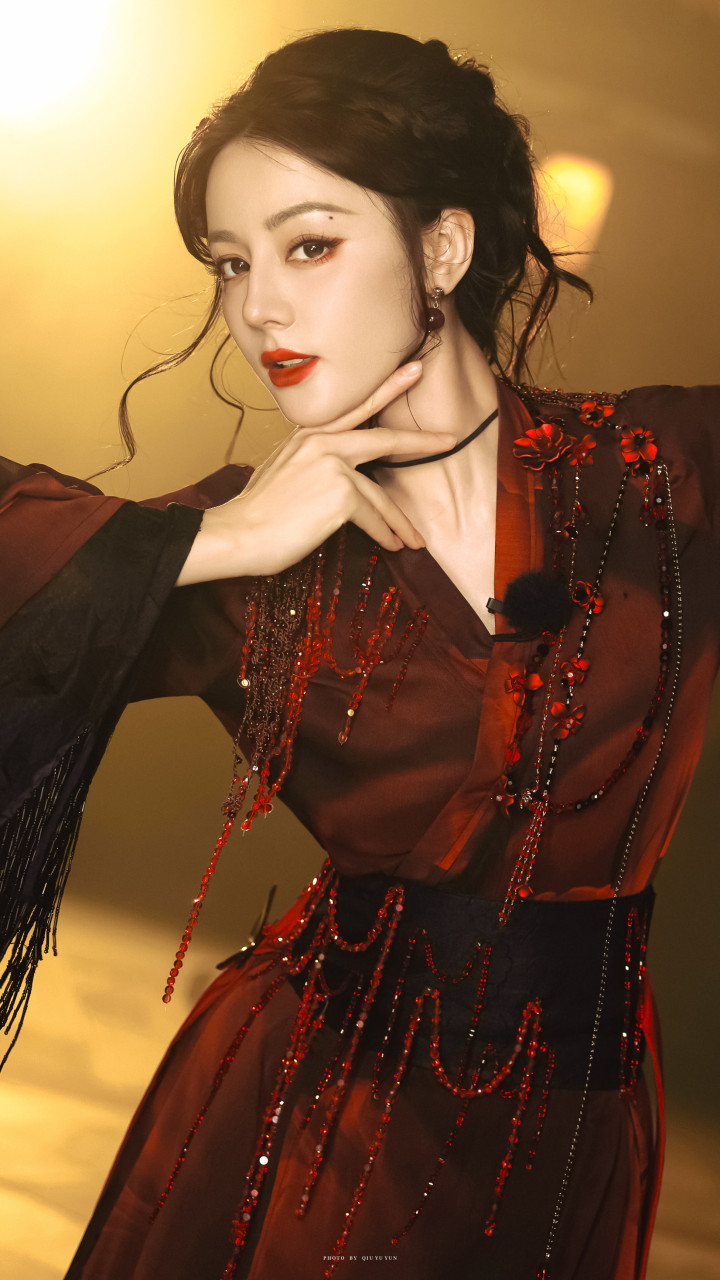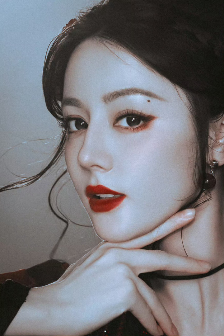 迪丽热巴精致妆容, 红唇尤为亮眼, 凸显妩媚气质!