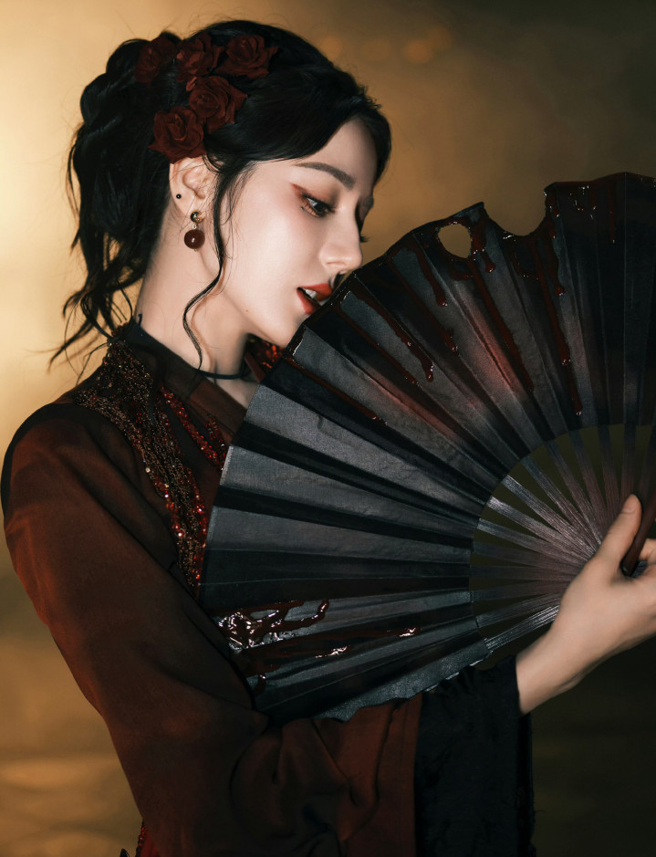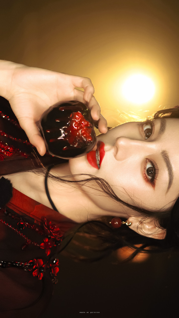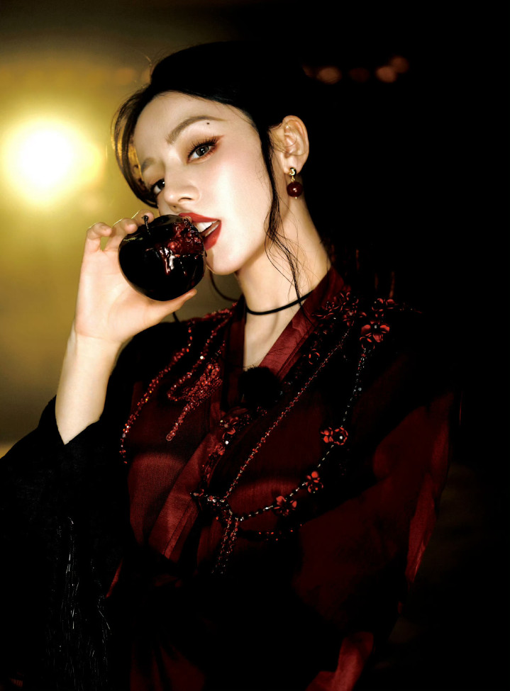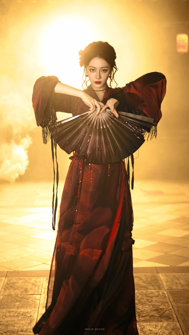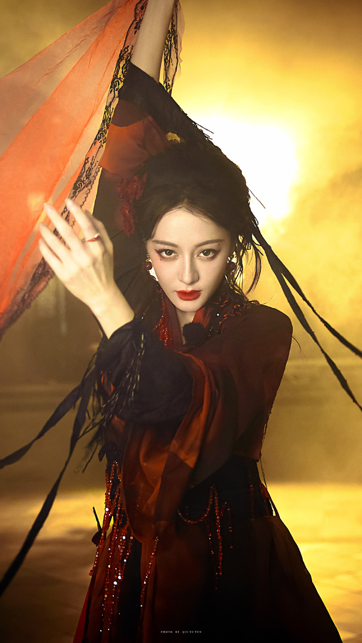 迪丽热巴精致妆容, 红唇尤为亮眼, 凸显妩媚气质!