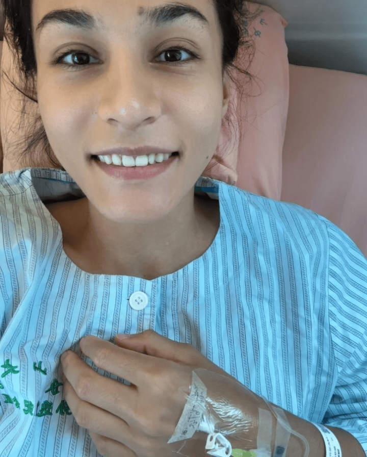 迪拉娜分享照片: 生病住院, 身上痛到不行