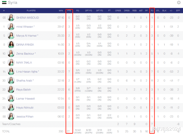 全场比赛,叙利亚全队高达44次失误,比全场得分27分更高,不夸张地说,两支球队完全是不同一个档次。