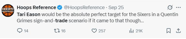 其实在几天之前,联盟中就已经有媒体收到风,他们认为小贾都跟火箭达成提前续约许久,但伊森却迟迟没有反应,大概率是跟火箭的续约谈判陷入僵局。美媒Hoops Reference就表示,如果火箭要交易伊森,那么费城用格兰姆斯换他是一个很好的方案。