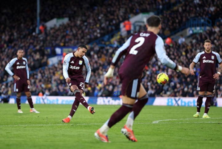 维拉确实算不上英超最华丽的队伍,甚至可以说是最不激情的一支——场均总进球数(自己进球+失球)只有 2.1 个,全英超垫底。他们也不是最讲究技术或最能赢球的,尽管自埃梅里入主帅位已来到第四个赛季,球队的齿轮才算是真正咬合到位,转得风生水起。他们队里也没有哈兰德或萨拉赫那样的天生射手王。但即便如此,维拉在英格兰足坛的群雄并立中,依旧是不得不看的一道风景。为什么?因为他们精通于一项似乎被时代遗忘了的武功——禁区外起脚远射。在麦金恩和他的僚机们在场时,这招往往能一击致命,直接转化成进球。