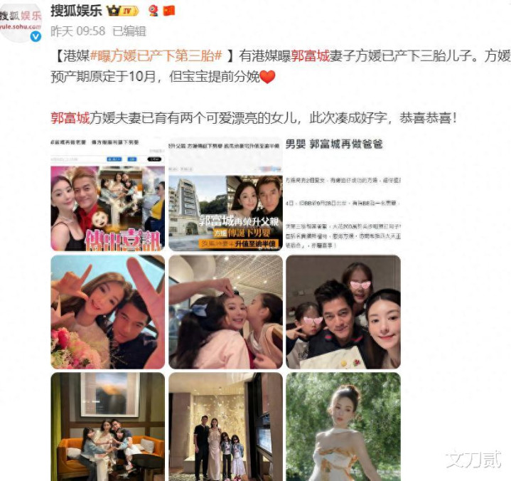 郭富城终于硬气一回! 打破天王“命中无子”魔咒, 曝方媛三胎得子