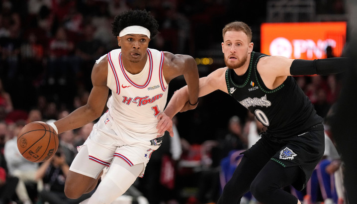 火箭坐镇主场迎战森林狼,开场4-10落后6分,杜兰特、申京和阿门带队10-2反超2分,随后两队展开疯狂的对攻大战,第一节打完火箭36-37落后1分,杜兰特首节打满12分钟,7投6中高效砍下14分4篮板2助攻,阿门则是单节7中6贡献12分3篮板。
