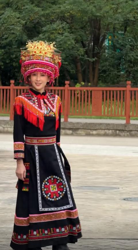 紧接着森女士身上的衣服发生了改变,她穿着瑶家的传统服饰,十分的美丽。